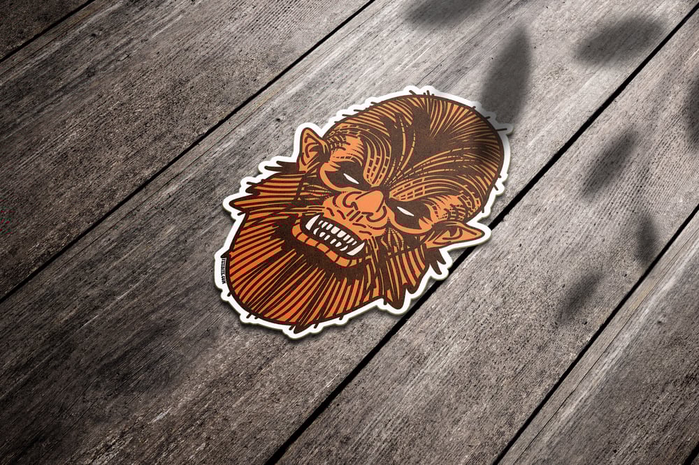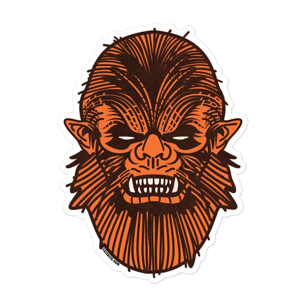 Retro-inspired Werewolf illustration by artist Yeti Bite printed on a large high quality, glossy sticker perfect for your laptop, skateboard, kick drum, guitar, drink bottle etc.